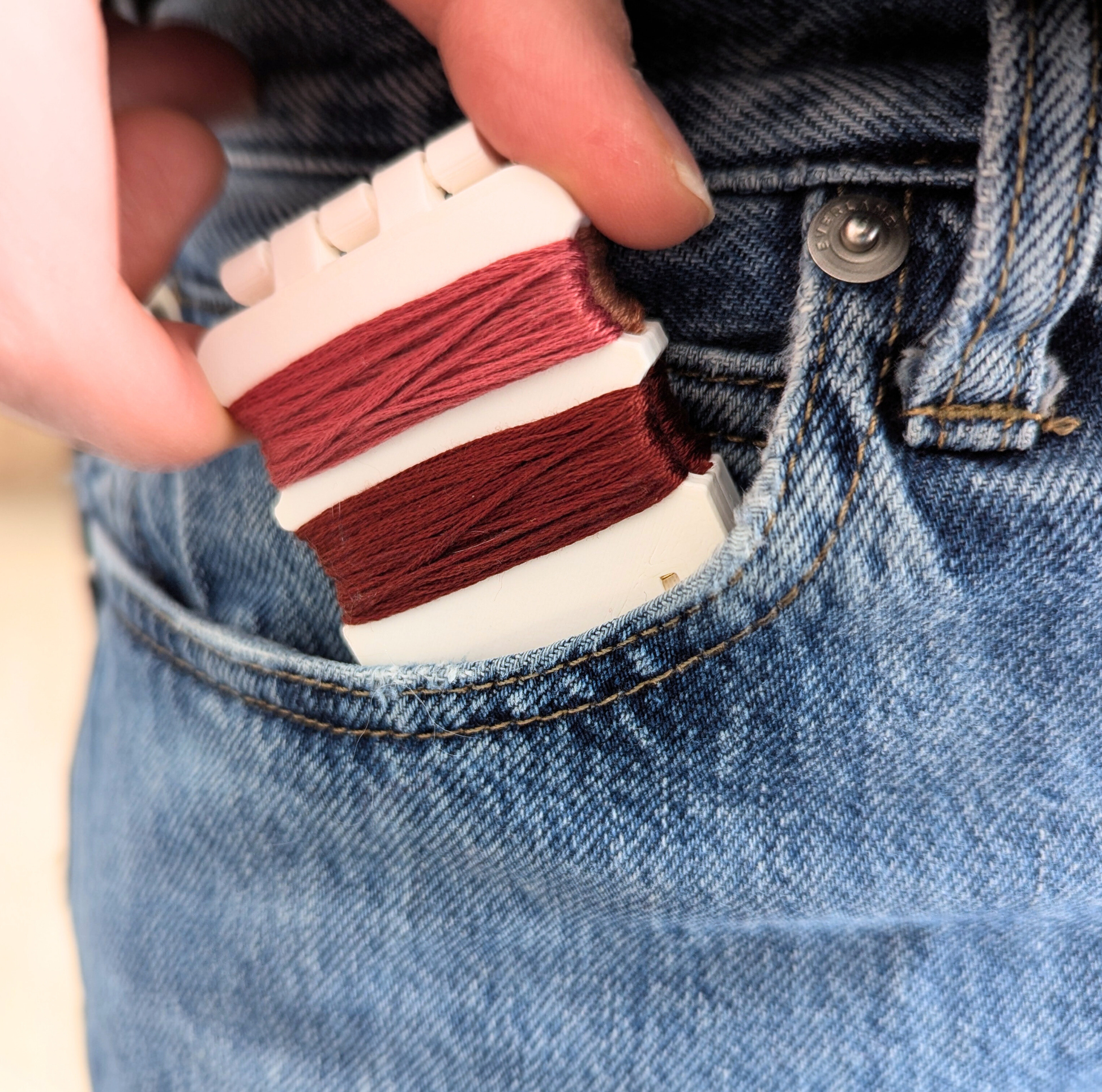 Whether you're squeezing in a few stitches on your lunch break or you're traveling light, this pocket-sized embroidery floss holder keeps your project organized wherever you go!